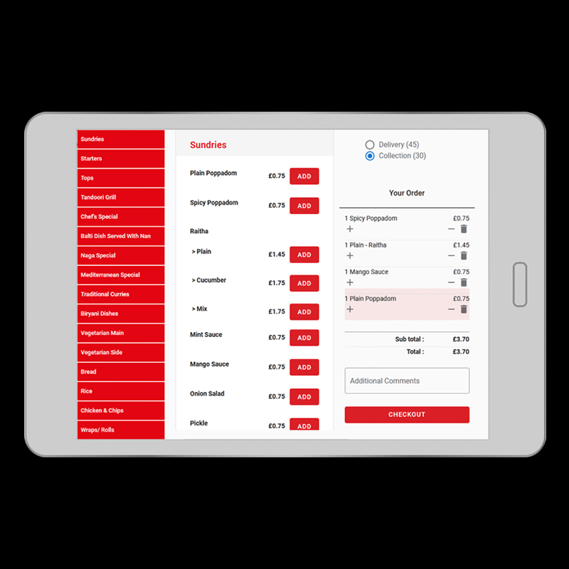 Online only. Weekly subscription. - One touch screen android terminal & One printer - Free dynamic SEO friendly website. - Integrated online ordering system. (0% commission) - Option to upgrade to GK-Soft premium website with £150.00 additional charge. Price: Initial setup fee from £150.00. £14.00 per week. Contract length 24 months. Note: Tablet is not included.